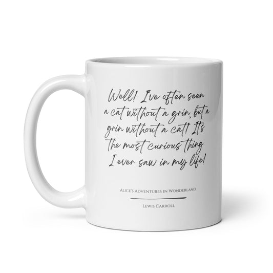 Alice in Wonderland "Grin Without a Cat" Literary Quote Mug