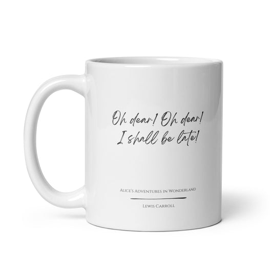 Alice in Wonderland "Shall Be Late" Literary Quote Mug